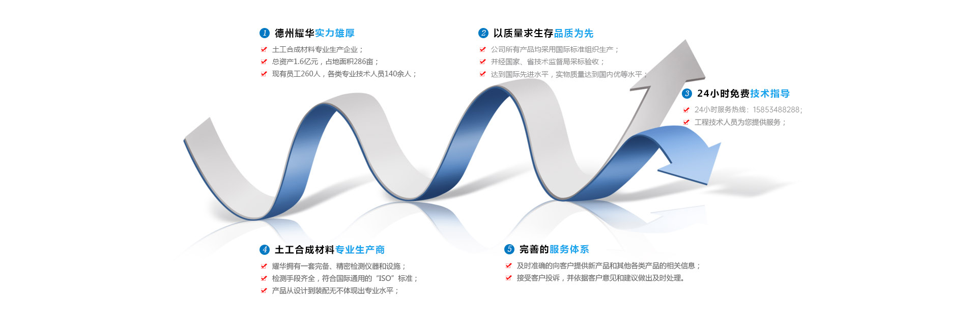 德州耀華土工材料有限公司是目前全國較大、品種其全的土工合成材料專業(yè)生產(chǎn)企業(yè),主要產(chǎn)品有復(fù)合土工膜、HDPE土工膜、長絲土工布、防草布、防水土工布、水庫防滲膜、防水板、生態(tài)袋、三維復(fù)合排水網(wǎng)、長絲機(jī)織土工布、EVA土工膜、無紡布、6.2m寬幅短纖針刺無紡布、6.0m寬幅土工膜、復(fù)合防水板、6.0m幅寬長絲土布等。本公司有年產(chǎn)萬噸滌(丙)短纖維兩用生產(chǎn)線、無紡布、PE防水板、復(fù)合膜等10余條生產(chǎn)線,工藝技術(shù)先進(jìn)。HDPE土工膜、復(fù)合土工膜價格低廉...【更多】